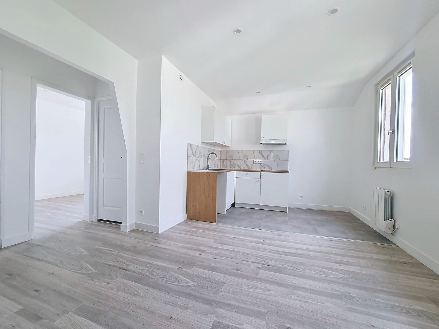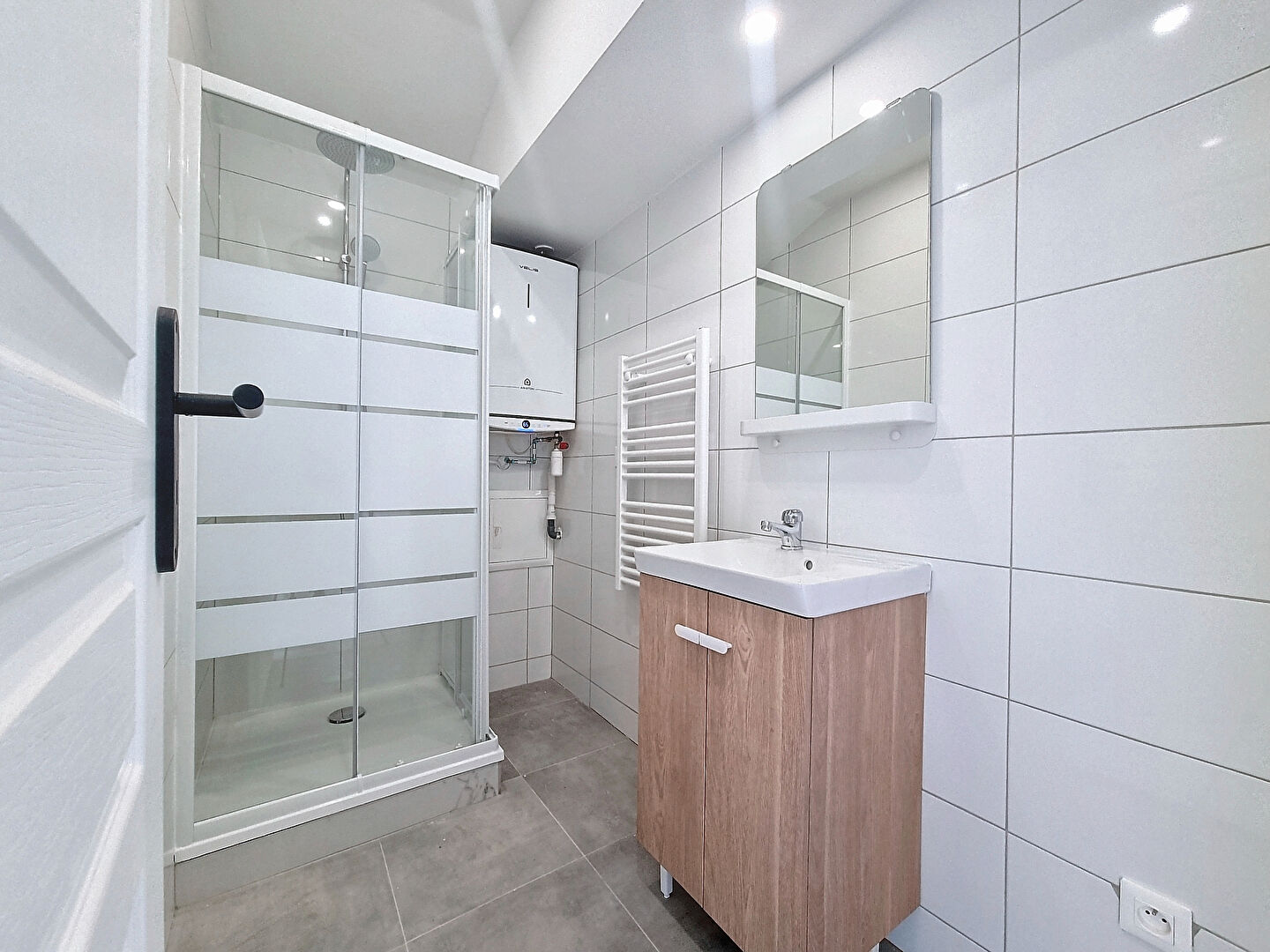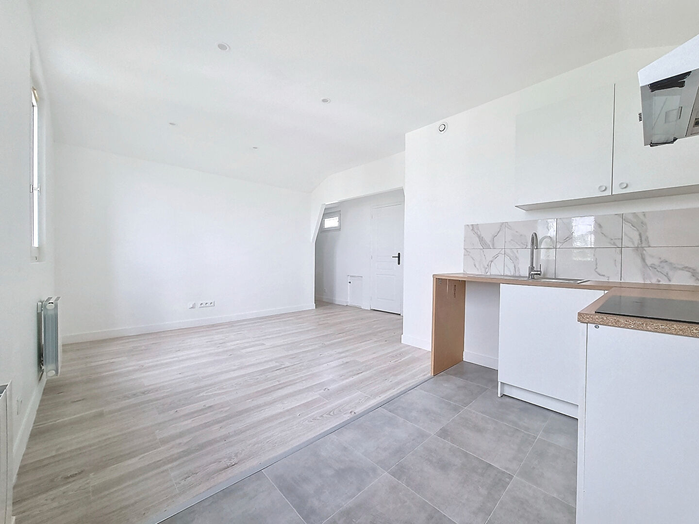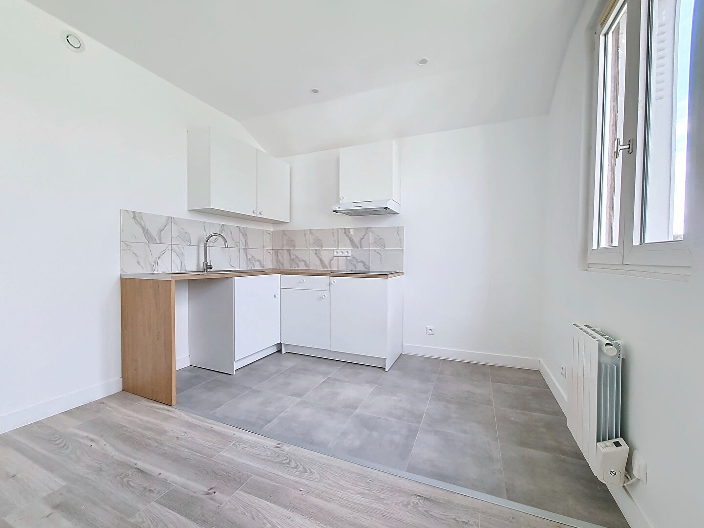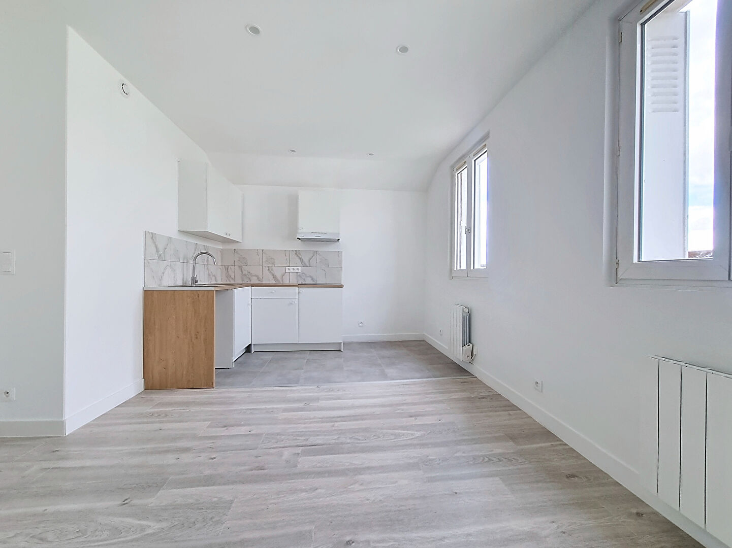 Dans une petite copropriété, cet appartement situé au dernier étage et entièrement refait à neuf vous offre: une entrée avec rangements, une séjour-salle à manger avec une cuisine aménagée et équipée d’une plaque de cuisson et d’une hotte, une chambre, une salle d’eau avec et un wc séparé.