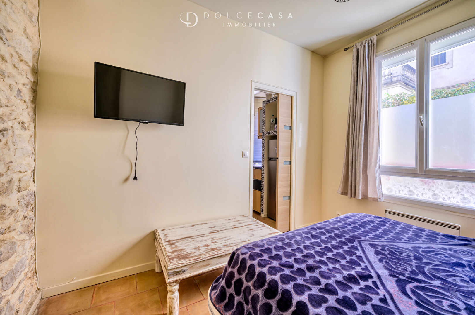 Cet appartement de 2 pièces entièrement rénové, vous offre des prestations de qualité. Il comprend une entrée avec coin buanderie, un séjour lumineux avec cuisine ouverte, une chambre avec placards intégrés et une salle d’eau avec WC.