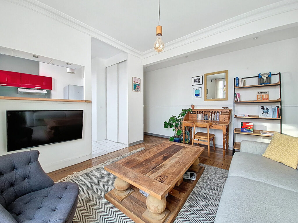 Dans une petite copropriété bien entretenue, au 1er étage cet appartement deux pièces vous offre: un séjour avec cuisine ouverte aménagée et équipée, une chambre et une salle d’eau avec wc. Appartement en très bon état, lumineux et au calme sur cour.