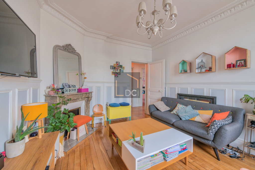 Tout le Charme de l’ancien (parquet, moulures, cheminée) pour Cet appartement 3 pièces , il vous offre une entrée, un salon séjour, une cuisine aménagée, une chambre de 14 M2 avec dressing , une chambre de 11 m2, une salle d’eau et un w.c séparé. une cave complète ces prestations.