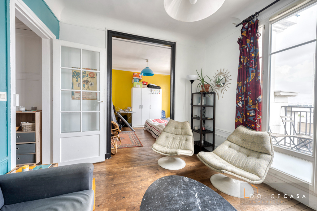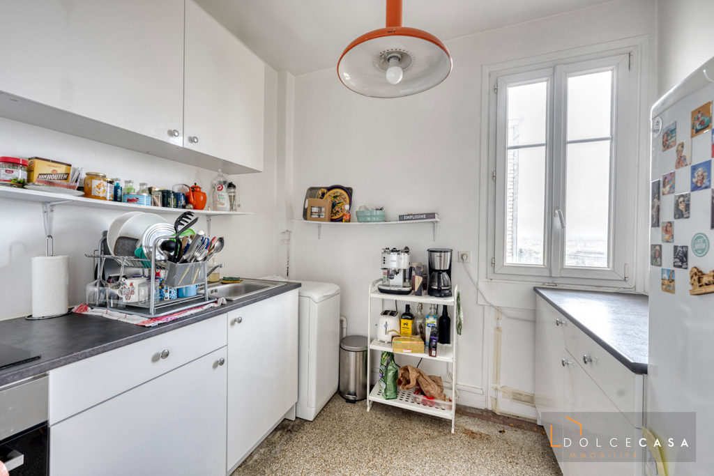 Dans une belle copropriété des années 30, au dernier étage avec ascenseur.