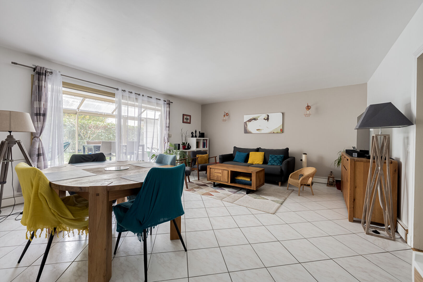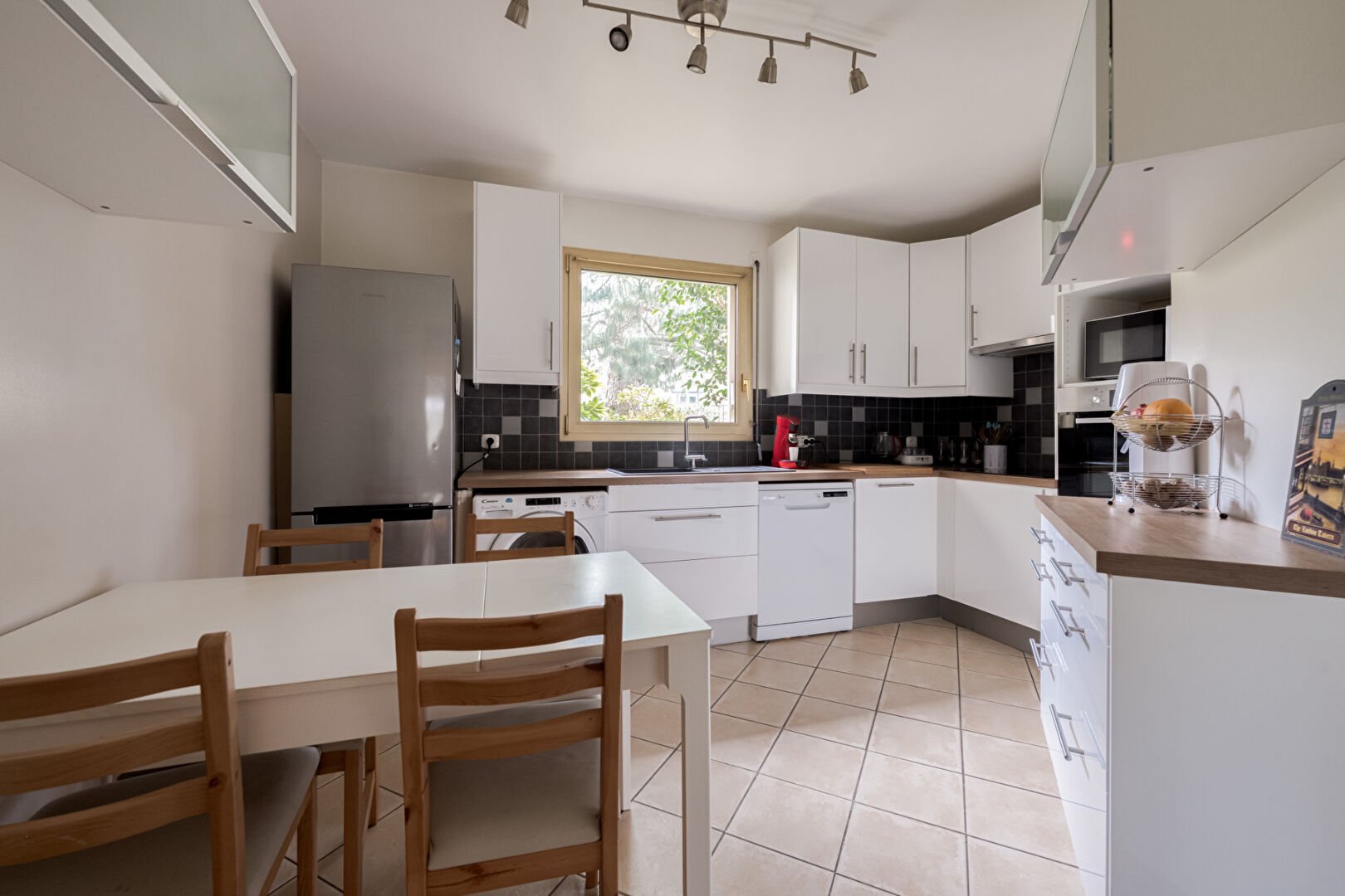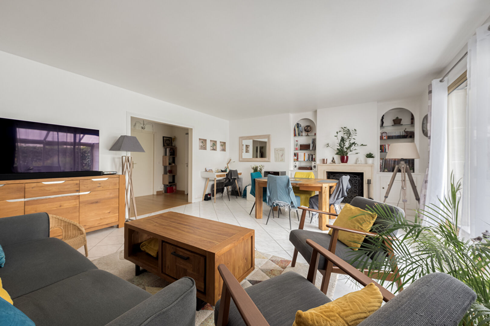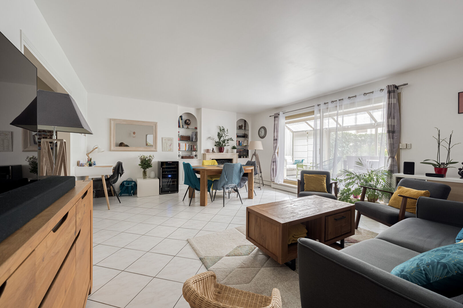 Appartement 5 pièces de 120,8 M2 utiles et 101m2 loi carrez composé d’une entrée avec rangements, un double séjour de 30m2 donnant accès à une véranda de 19,58m2 et un jardin paysagé au calme. La cuisine est dinatoire aménagée et équipée en très bon état. pour l’espace nuit, il se décompose en 3 chambres spacieuses avec rangements et accès sur l’exterieur, une salle d’eau et une salle de bains.