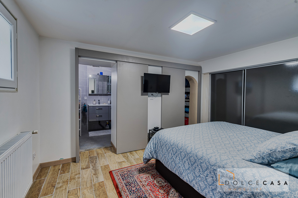 Au deuxième niveau, une suite parentale avec salle d’eau privative, une deuxième chambre, une buanderie et un garage.