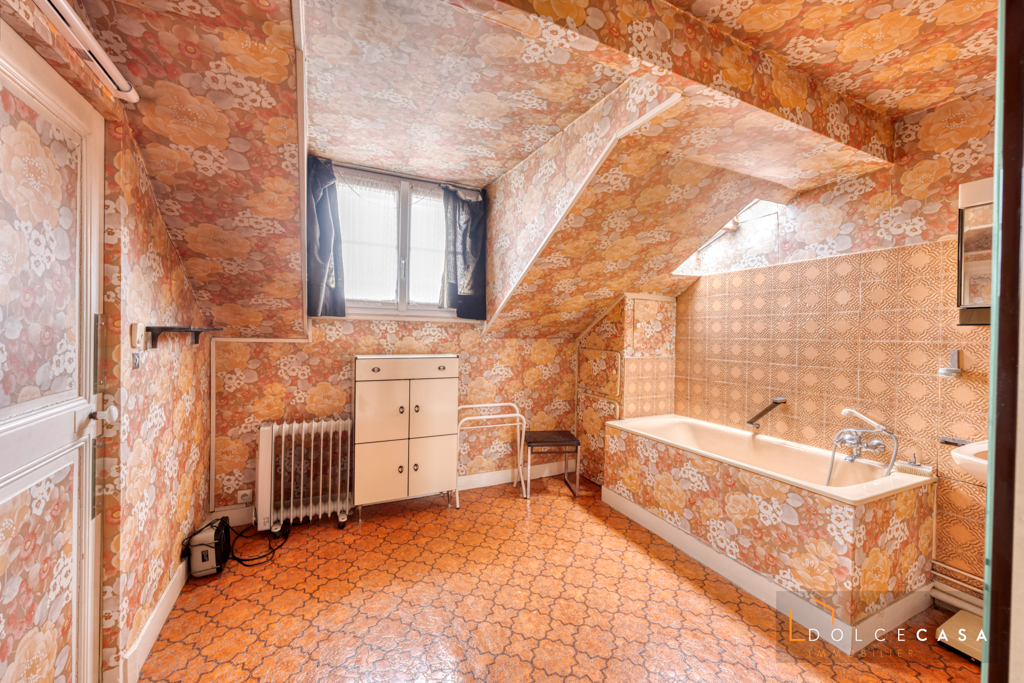 Maison 1930 édifiée sur une parcelle de 343 m2 composée au rez de chaussée d’un salon, un séjour , une cuisine aménagée avec accès à une véranda, une chambre et un w.C. Au premier étage, deux chambres (possible 3), deux greniers et une salle de bains.