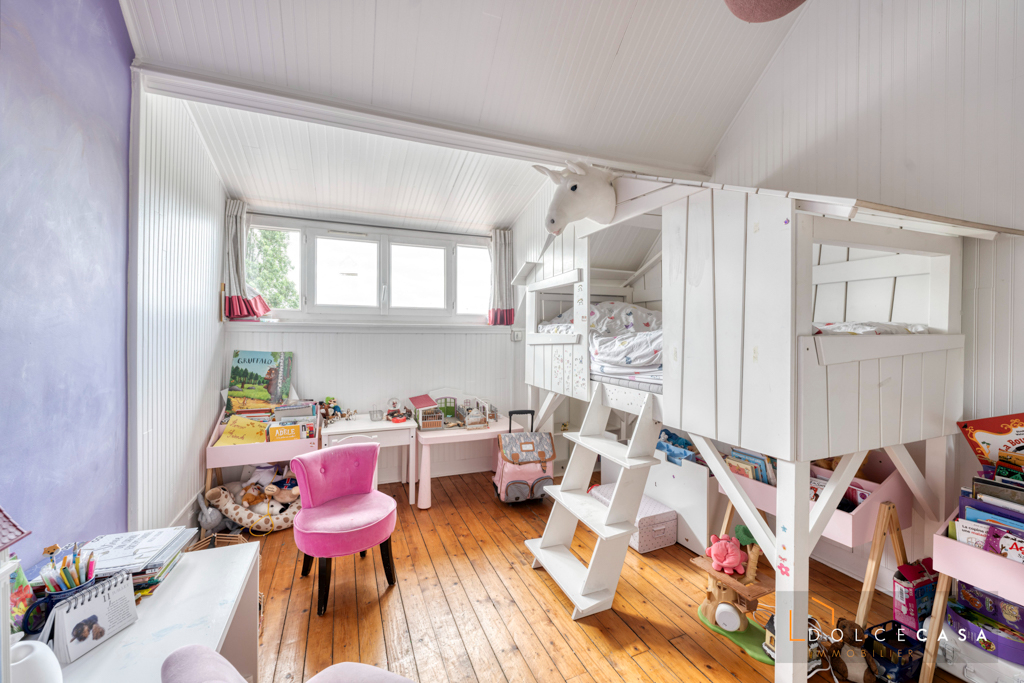 La maison bénéficie d’une dépendance en fond de parcelle de 45 m2 aménagée en chambre, salle de jeux et salle d’eau., un garage pouvant accueillir Deux voitures et une buanderie.