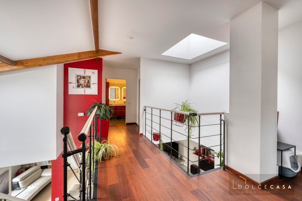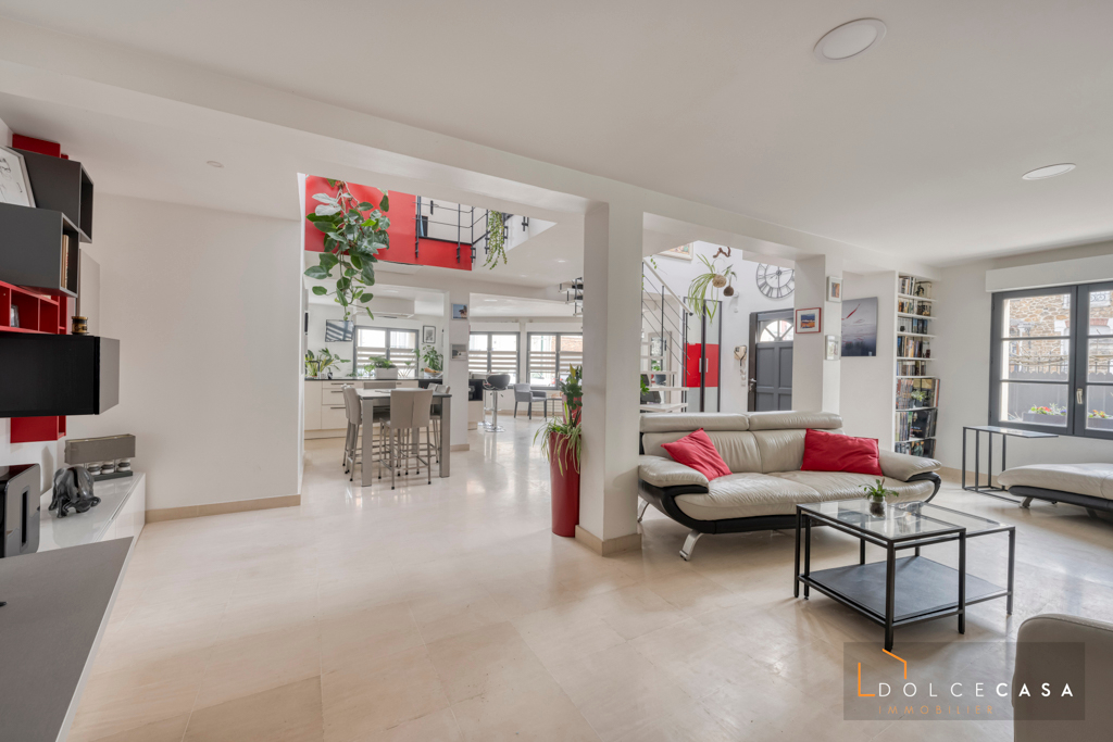 Maison style LOFT de 196 m2 habitables édifiée sur une parcelle de 173m2 composée au rez de chaussée d’une pièce à vivre de 80 m2 avec cuisine aménagée et équipée haut de gamme, une suite parentale avec douche à l’italienne et un W.C séparé. A l’étage, 4 chambres, une salle d’eau , une salle de bains et un dressing.