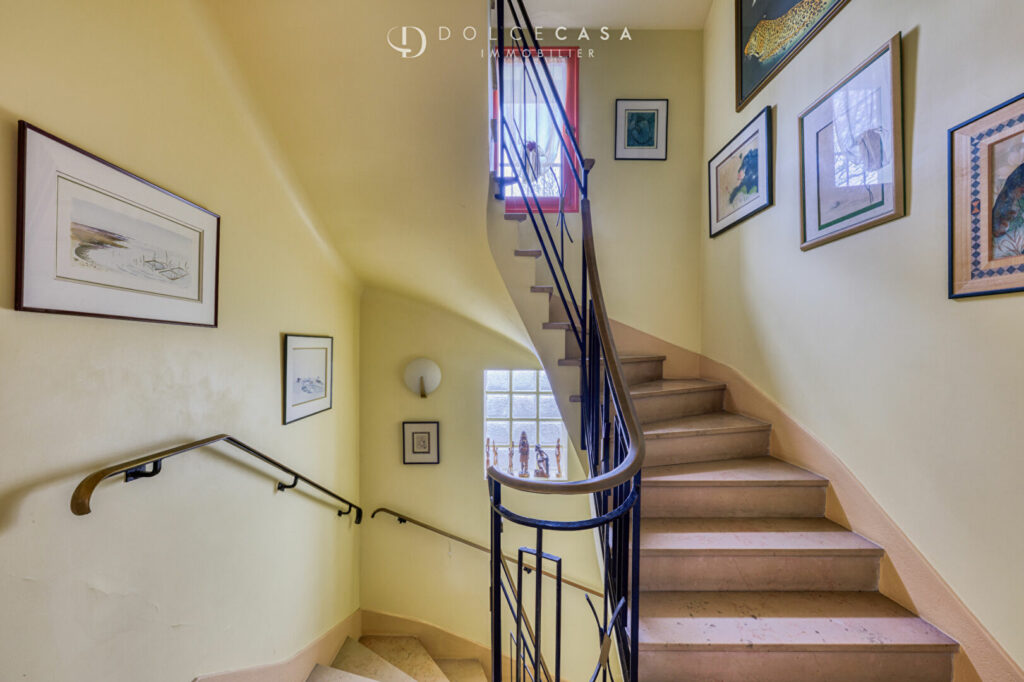 Au rez-de-chaussée, une grande pièce à vivre composée d’un salon-salle à manger, d’une cuisine aménagée et équipée, d’un bureau et d’un dressing, le tout donnant sur une agréable terrasse de 70 m² idéalement exposée et à l’abri des regards.